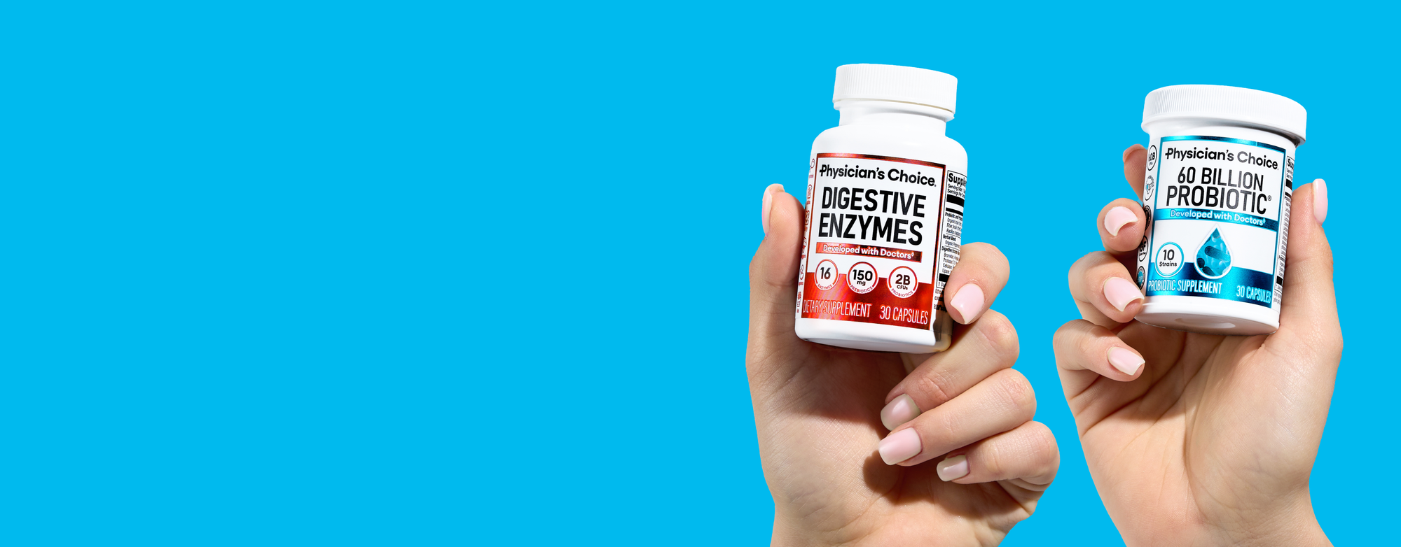Want to maximize your probiotic’s effectiveness? Take it on an empty stomach! Physician’s Choice probiotics are specially formulated with an acid-resistant capsule to ensure that the strains make it to the gut where they can do their job.