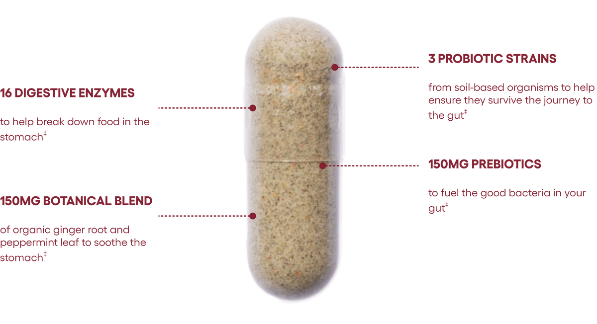 Combines 16 powerful enzymes with soil-based probiotics and organic prebiotics to break down proteins, carbs, dairy, fruits, veggies, and fats - covering all types of diets.