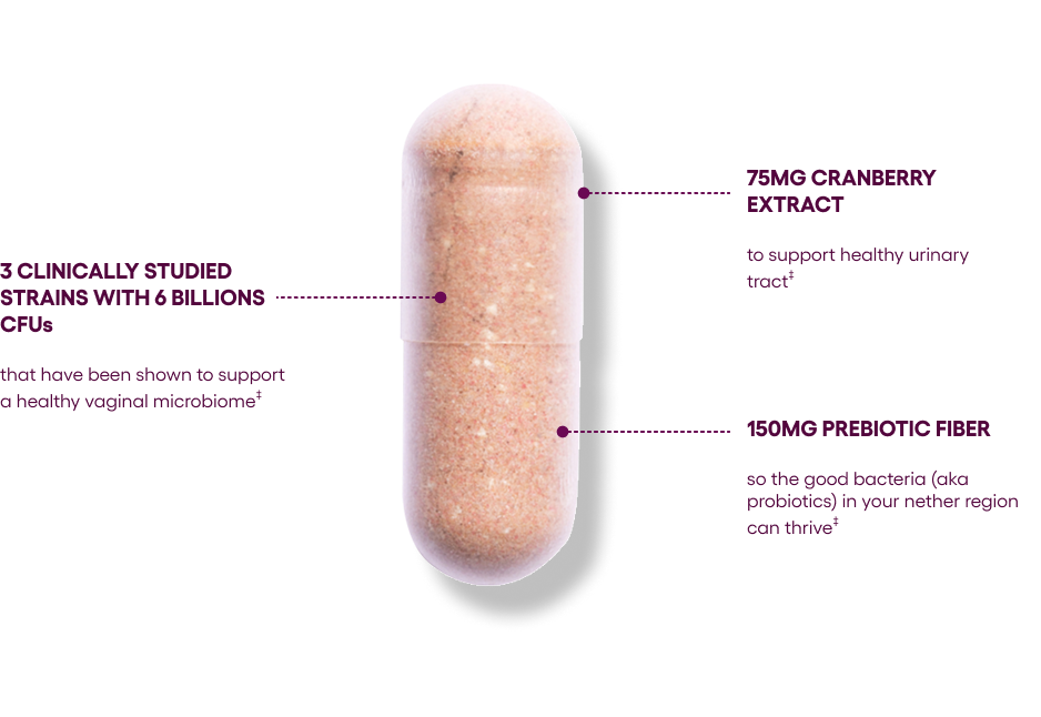 Our Vaginal Probiotic is meticulously formulated with probiotic strains that help promote a balanced vaginal microbiome & support a healthy urinary tract —all in one powerful, convenient capsule.
